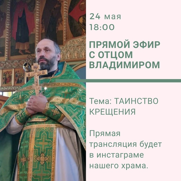 В это воскресенье в 18:00 состоится прямой эфир с настоятелем храма отцом Владимиром.